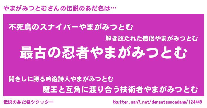 | 肩書あだ名 | 『やまがみつとむ閣下』 |