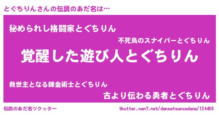 | 女子向けラノベタイトル風あだ名 | 『とぐちりん様がみてる』 |