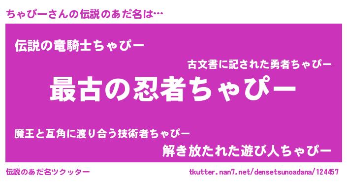 | ヒーロー風カッコイイあだ名 | 『ウルトラちゃぴーマン』『仮面チャダー』 |