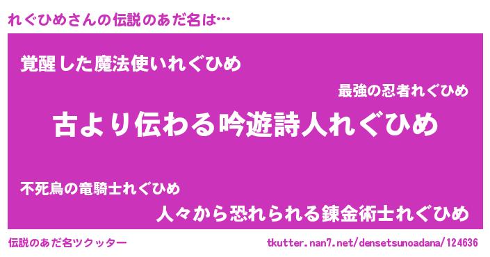 | ヘコむあだ名 | 『れぐひめ(小並感)』『れぐお』 |