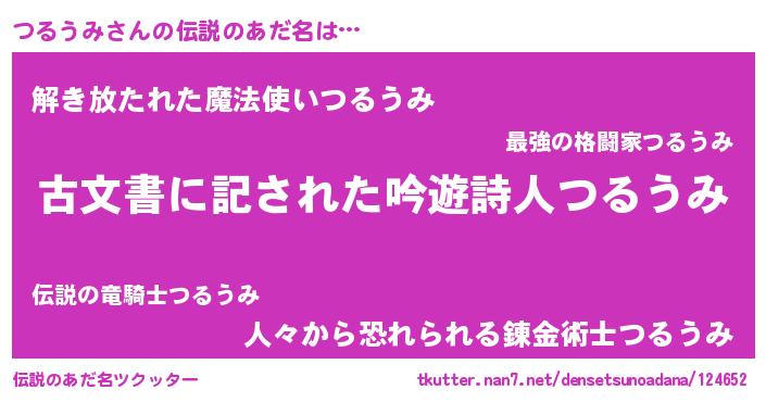 | 意味不明あだ名 | 『自称つるうみ』『なめこ科つるうみ属』 |