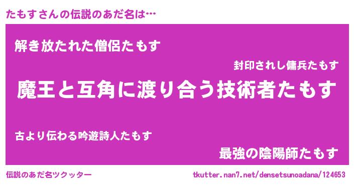 | 女子向けラノベタイトル風あだ名 | 『たもす恋絵巻』『たもすの玉の輿計画!』 |