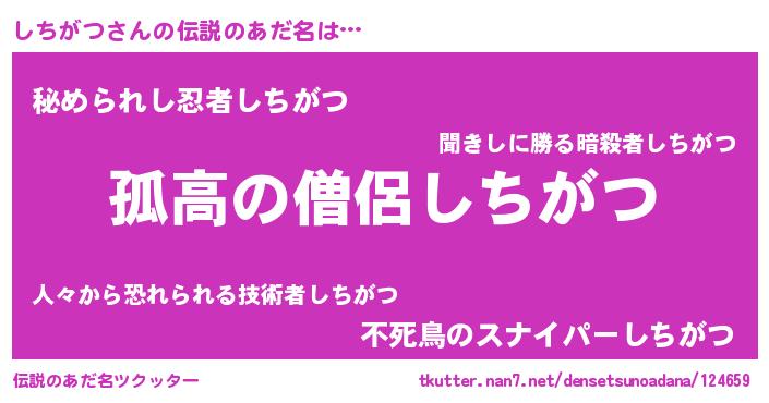 | ヒーロー風カッコイイあだ名 | 『仮面シチダー』『暗黒騎士シチ』 |