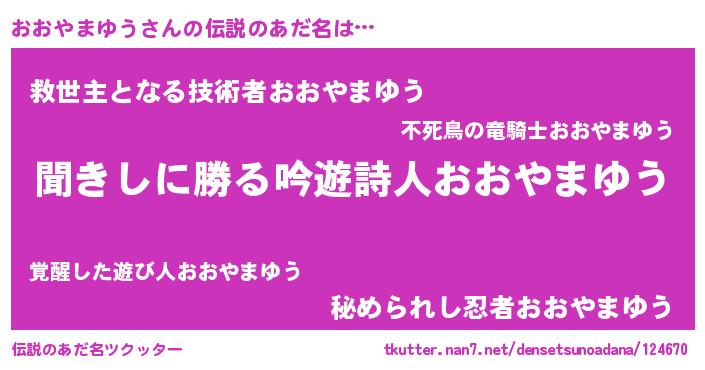 | ファンタジー風あだ名 | 『ユリオオヴァット』『オオディッシュ』 |