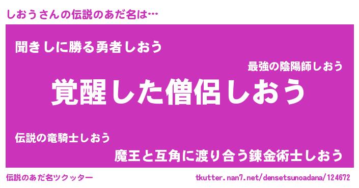 | 男性向けラノベタイトル風あだ名 | 『この素晴らしい世界にしおうを!』 |