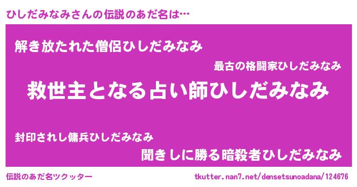 | ヒーロー風カッコイイあだ名 | 『天空の使者ひしだみなみ』 |