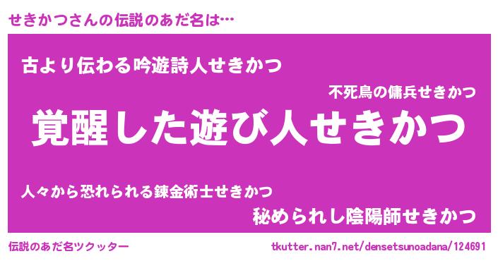 | 男性向けラノベタイトル風あだ名 | 『この素晴らしい世界にせきかつを!』 |