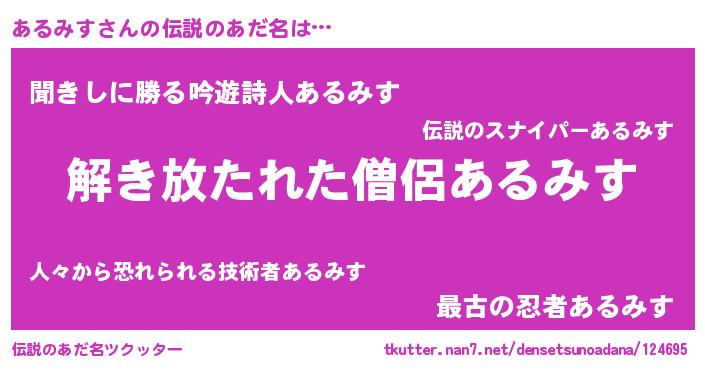 | ヘコむあだ名 | 『あるっ子』『あるみす(笑)』『牛乳』 |