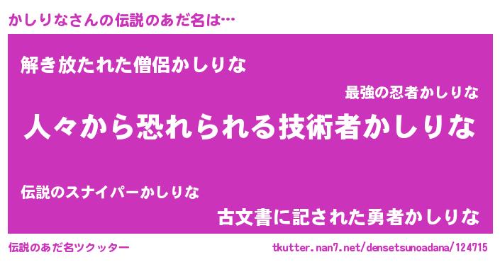 | ヒーロー風カッコイイあだ名 | 『友情の使者かしりな』『銀牙騎士カシ』 |