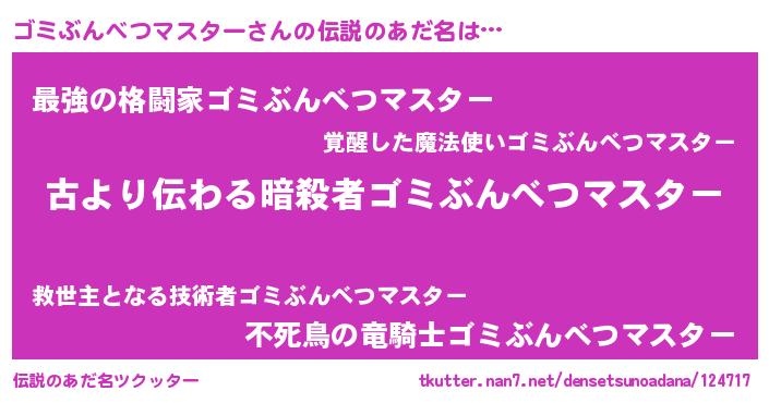| 意味不明あだ名 | 『永久保存ゴミぶんべつマスター』 |