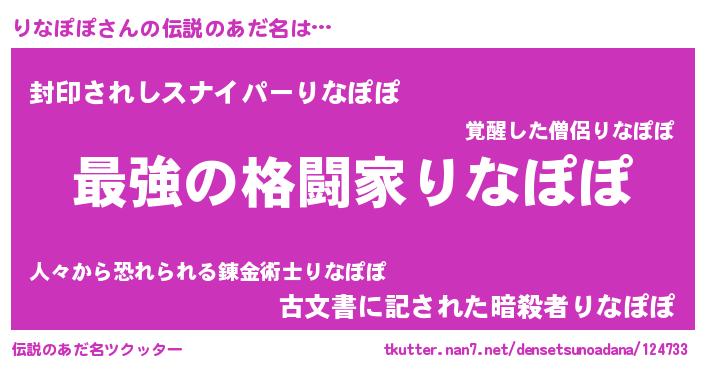 | 意味不明あだ名 | 『りなぽぽフォーエバー』『自称りなぽぽ』 |