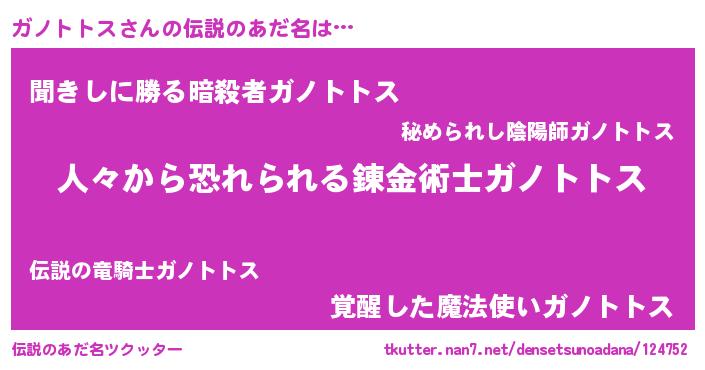 | 意味不明あだ名 | 『住所不定無職ガノトトス(98歳)』 |