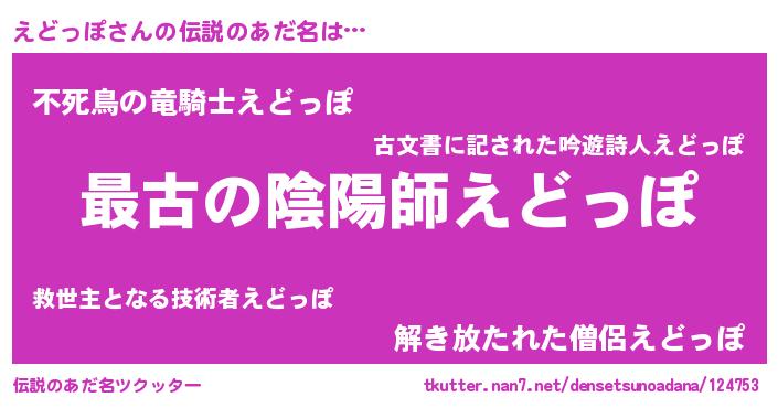 | 恥ずかしいあだ名 | 『エドッポデラックス』『えどっちょ』 |