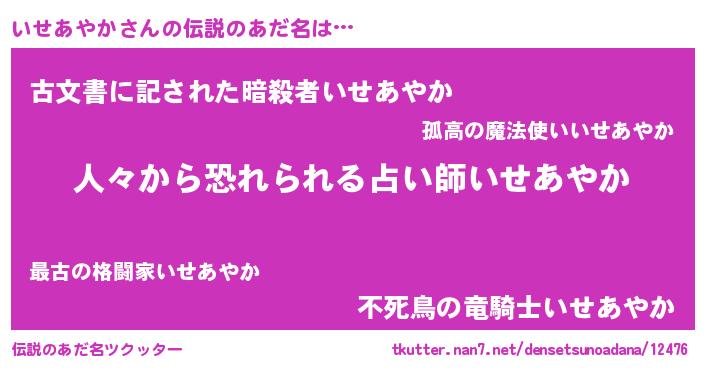 | 女子向けラノベタイトル風あだ名 | 『いせあやかなんてお断りですっ。』 |