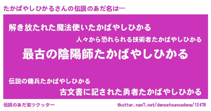 | ファンタジー風あだ名 | 『エターナルタカバヤシヒカルー』 |