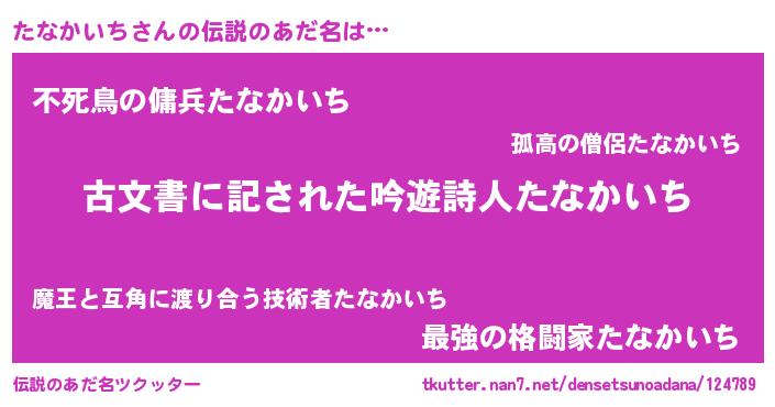 | ヒーロー風カッコイイあだ名 | 『究極戦士タナカイチ』『ネオタナカイチ』 |