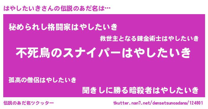 | ヒーロー風カッコイイあだ名 | 『最強戦士ハヤシタイキ』 |