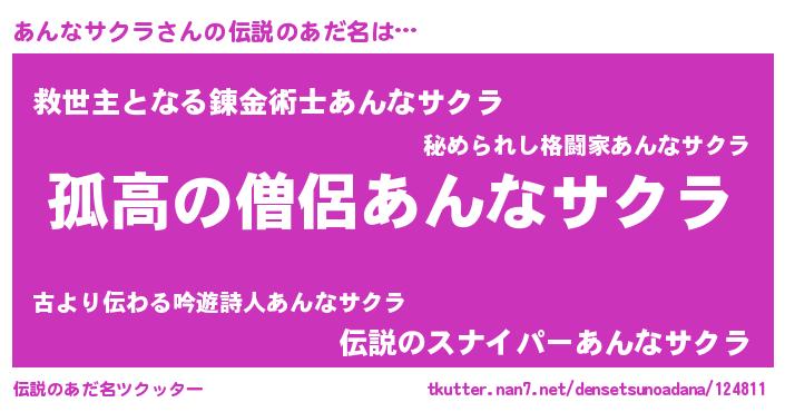 | 男性向けラノベタイトル風あだ名 | 『緋弾のアンナサクラ』 |