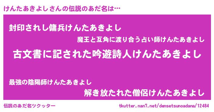 | ヘコむあだ名 | 『けんたあきよし(笑)』『けんにゅー』 |