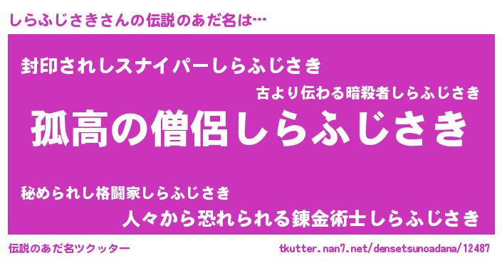 | 意味不明あだ名 | 『とにかく怪しいしらふじさき』 |