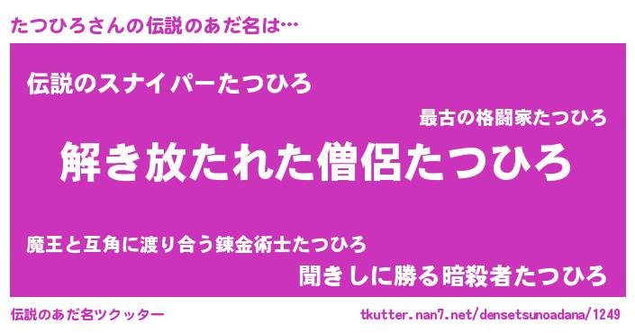 | 意味不明あだ名 | 『住所不定無職たつひろ(40歳)』 |