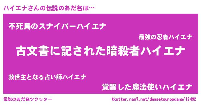| 胡散臭い通販商品みたいなあだ名 | 『前代未聞の健康食品…その名も「ハイエナ」』 |