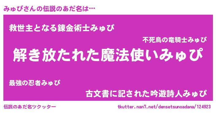 | 意味不明あだ名 | 『とにかく怪しいみゅぴ』『自称みゅぴ』 |