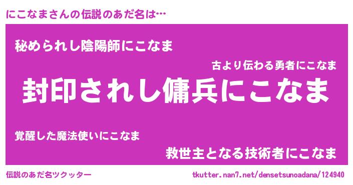 | ヒーロー風カッコイイあだ名 | 『スーパーニコナマ』『仮面ニコダー』 |
