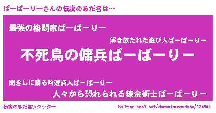 | ヒーロー風カッコイイあだ名 | 『スーパーバーバーリー』『魔戒騎士バー』 |