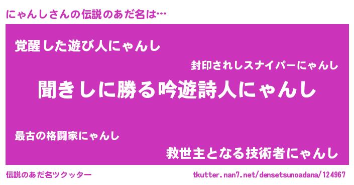 | 男性向けラノベタイトル風あだ名 | 『にゃんしという概念が存在しない退屈な世界 』 |