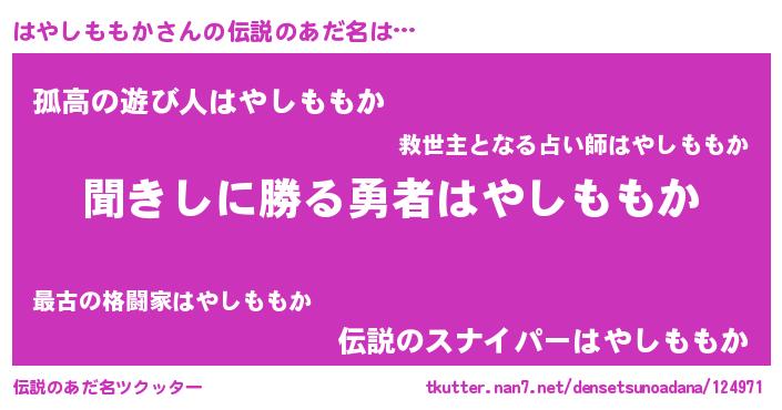 | ヘコむあだ名 | 『はやしももか(遠い目)』『はやぷりん』 |