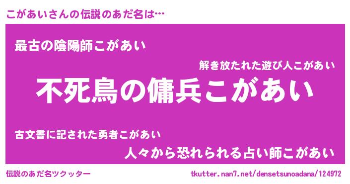 | 胡散臭い通販商品みたいなあだ名 | 『モテモテ間違いなし水晶球…その名も「こがあい」』 |