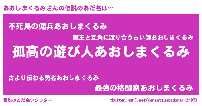 | 意味不明あだ名 | 『とにかく怪しいあおしまくるみ』 |