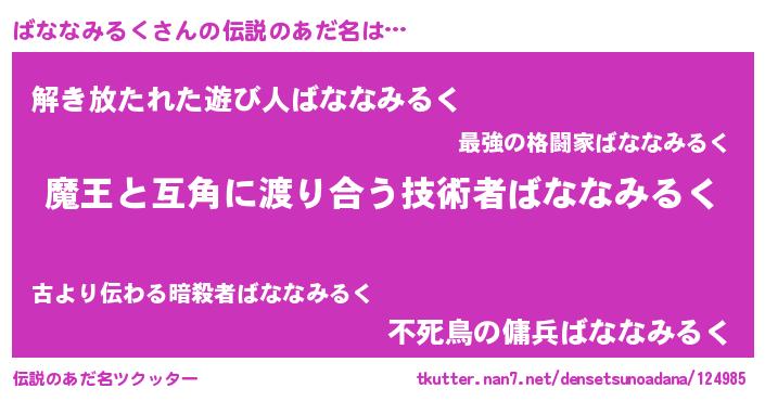 | ヒーロー風カッコイイあだ名 | 『愛の使者ばななみるく』『魔戒騎士バナ』 |