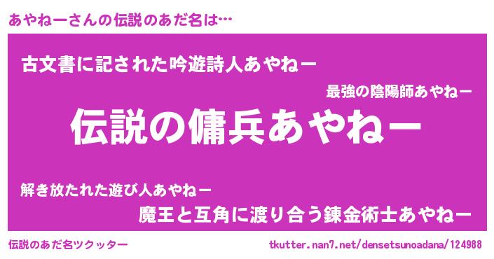 | ヒーロー風カッコイイあだ名 | 『スーパーアヤネー』『ネオアヤネー』 |
