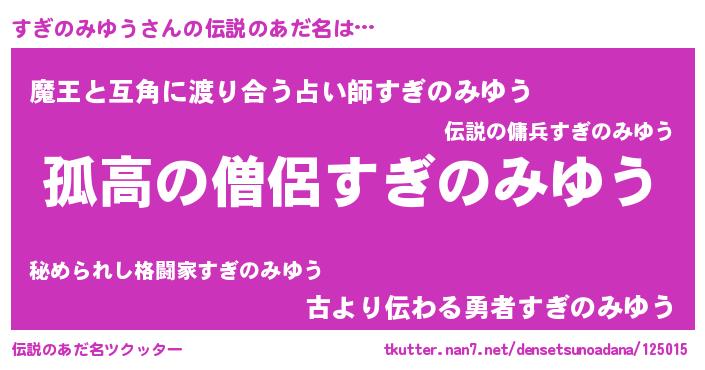 | 意味不明あだ名 | 『自称すぎのみゆう』 |