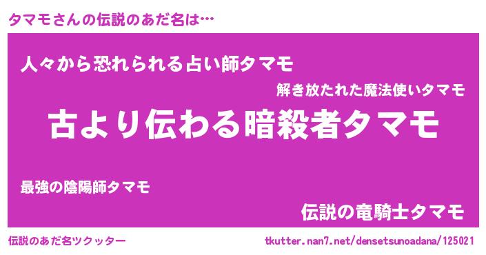 | ヘコむあだ名 | 『タマモ(爆)』『タマにー』『タマを』 |