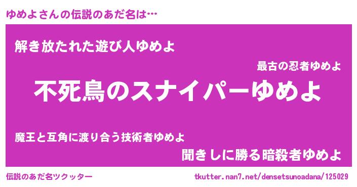 | ヒーロー風カッコイイあだ名 | 『スーパーユメヨ』『銀牙騎士ユメ』 |