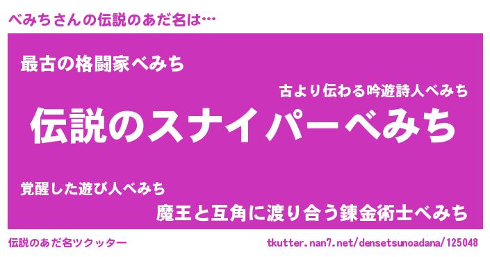 | 男性向けラノベタイトル風あだ名 | 『緋弾のベミチ』『べみちの憂鬱』 |