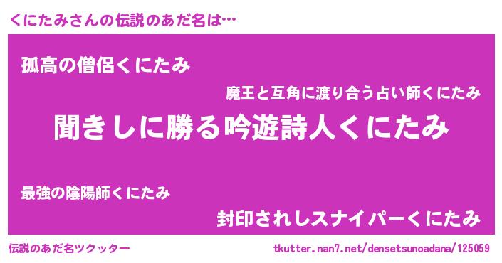 | ヒーロー風カッコイイあだ名 | 『ネオクニタミ』『幻影騎士クニ』 |