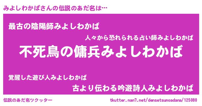 | ヒーロー風カッコイイあだ名 | 『スーパーミヨシワカバ』『仮面ミヨダー』 |