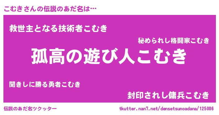 | ヒーロー風カッコイイあだ名 | 『暗黒騎士コム』『天空の使者こむき』 |