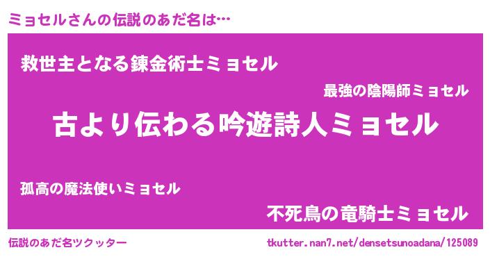 | 男性向けラノベタイトル風あだ名 | 『転生したらミョセルだった件』 |