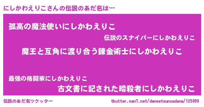 | 女子向けラノベタイトル風あだ名 | 『にしかわえりこ恋絵巻』 |