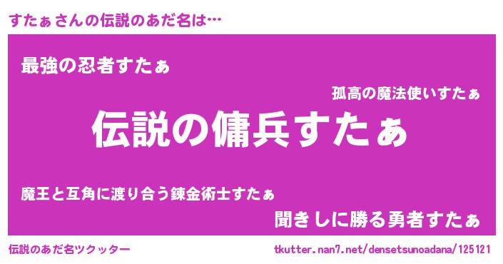 | ヒーロー風カッコイイあだ名 | 『ウルトラ戦士スタァ』『仮面スタダー』 |