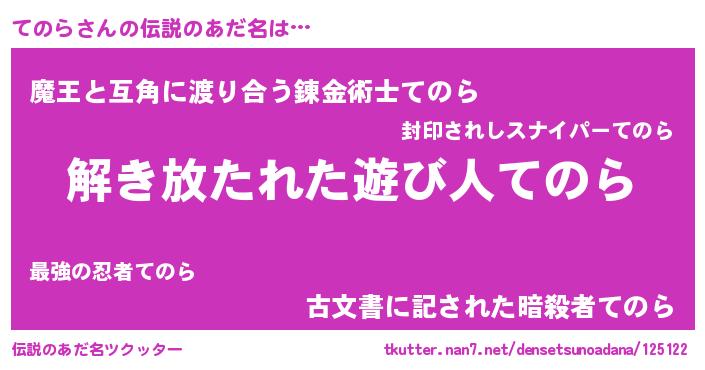 | 男性向けラノベタイトル風あだ名 | 『てのらの嫁は女の子じゃないと思った?』 |