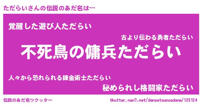 | 胡散臭い通販商品みたいなあだ名 | 『モテモテ間違いなし水晶球…その名も「ただらい」』 |