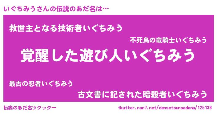 | ヘコむあだ名 | 『いぐぷりん』『いぐちみう(笑)』 |