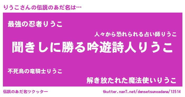 | 男性向けラノベタイトル風あだ名 | 『りうこという概念が存在しない退屈な世界 』 |