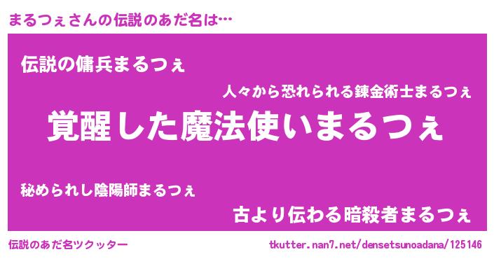 | 胡散臭い通販商品みたいなあだ名 | 『あなたにだけ特別に提供する100年もののヴィンテージワイン…その名も「まるつぇ」』 |